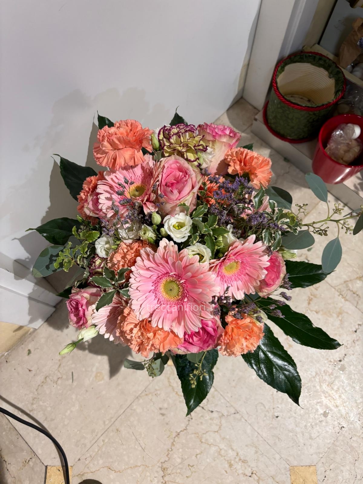 | Bouquet con gerbere, rose, garofani e statice Cod. 118320 |