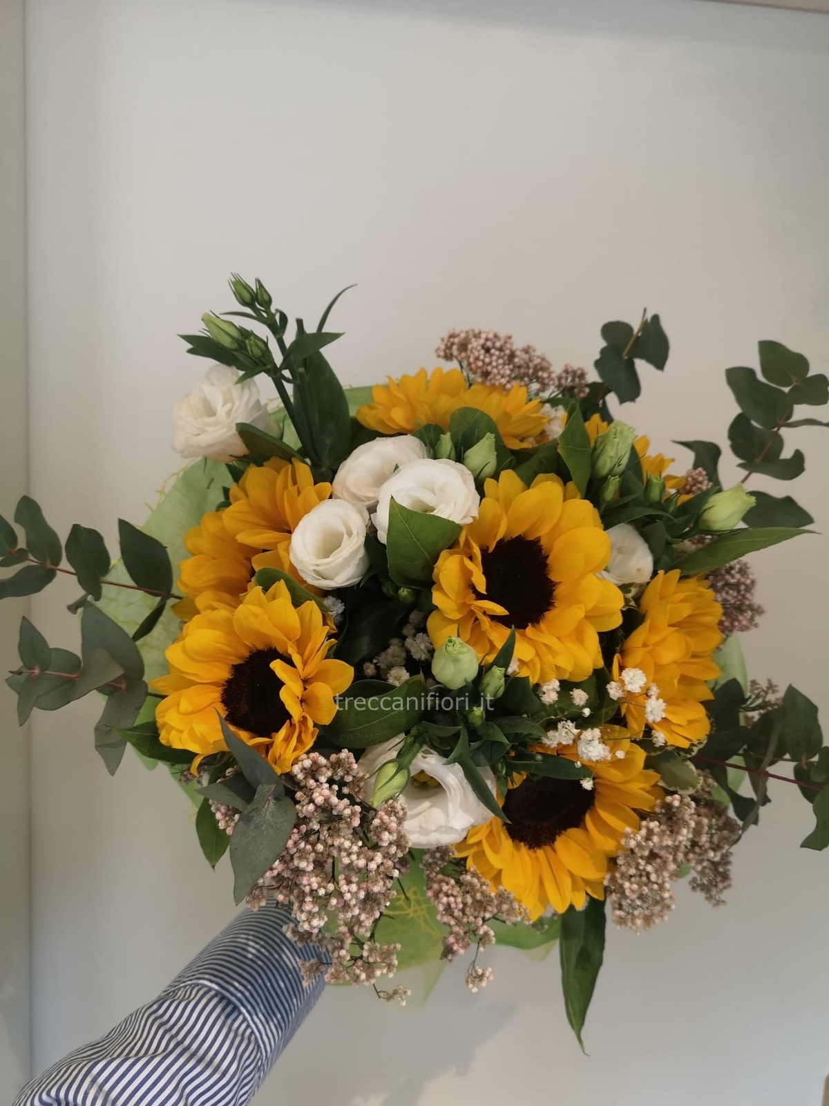 | Bouquet con girasoli e lisianthus bianchi Cod. 118292 |