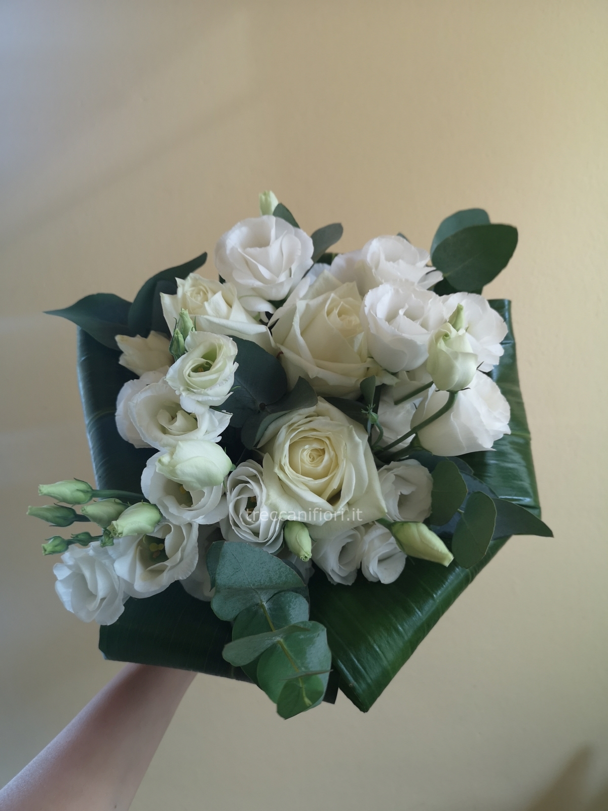 | Bouquet bianco con rose e lisianthus Cod. 118321 |